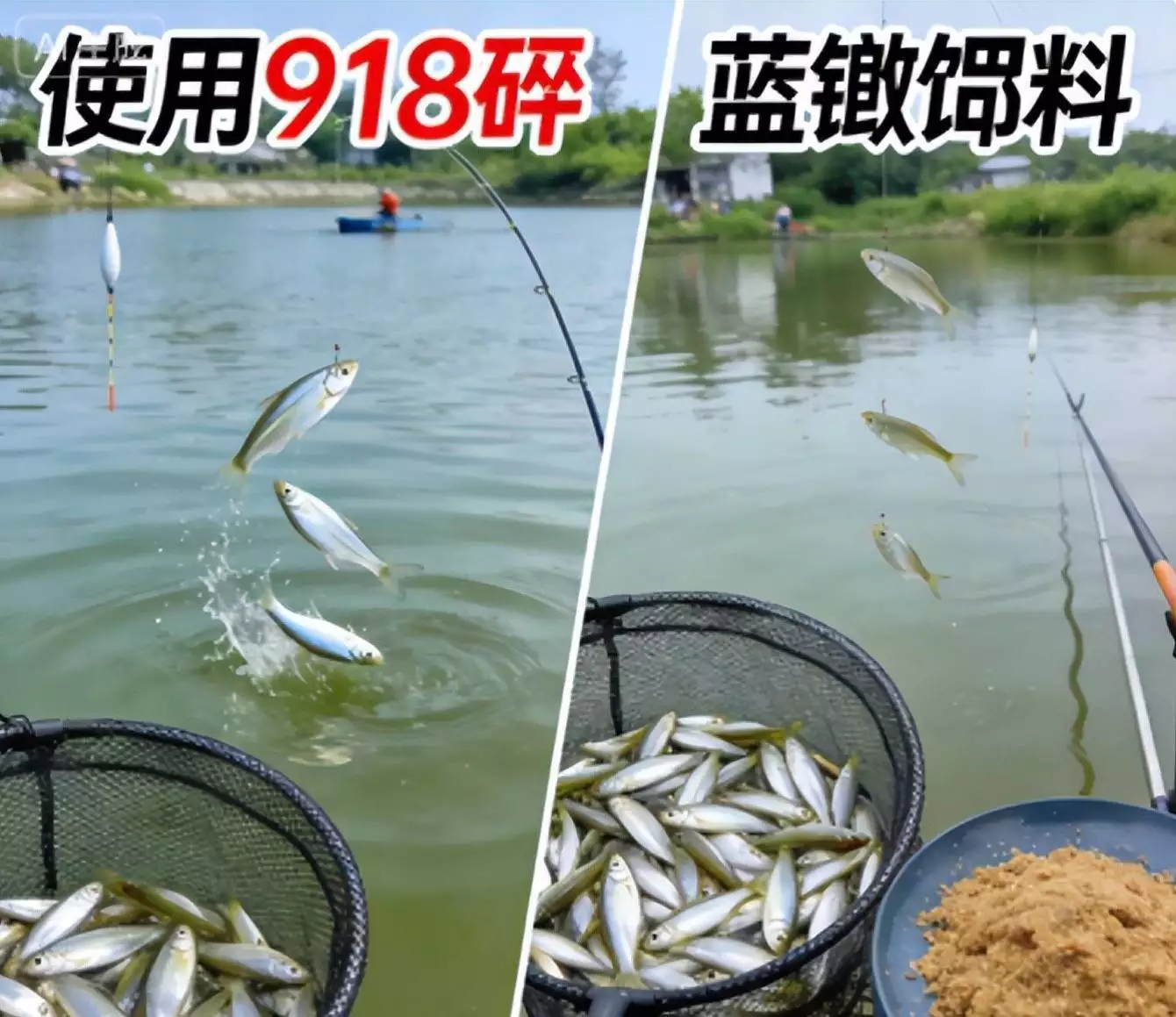 总结下来其实很简单,不用纠结哪款饵料更好,找准场景选对就行:如果是在静水浅滩、低温时段,想追求快速连竿的快感,就选蓝鲫,记得控制打揉次数,别让饵料太黏影响雾化;如果是在有水流的入水口,或者想钓稍大一点的白条,追求稳定上鱼、少补饵,就选918,开饵时不用多打揉,保持松散状态让颗粒自然剥落就行。另外给新手一个小技巧,要是遇到蓝鲫闹小杂鱼、918诱鱼慢的情况,可以按蓝鲫1:9182的比例混合开饵,既能保证一定的诱鱼速度,又能减少小杂鱼闹窝,我实测过,效果还不错。